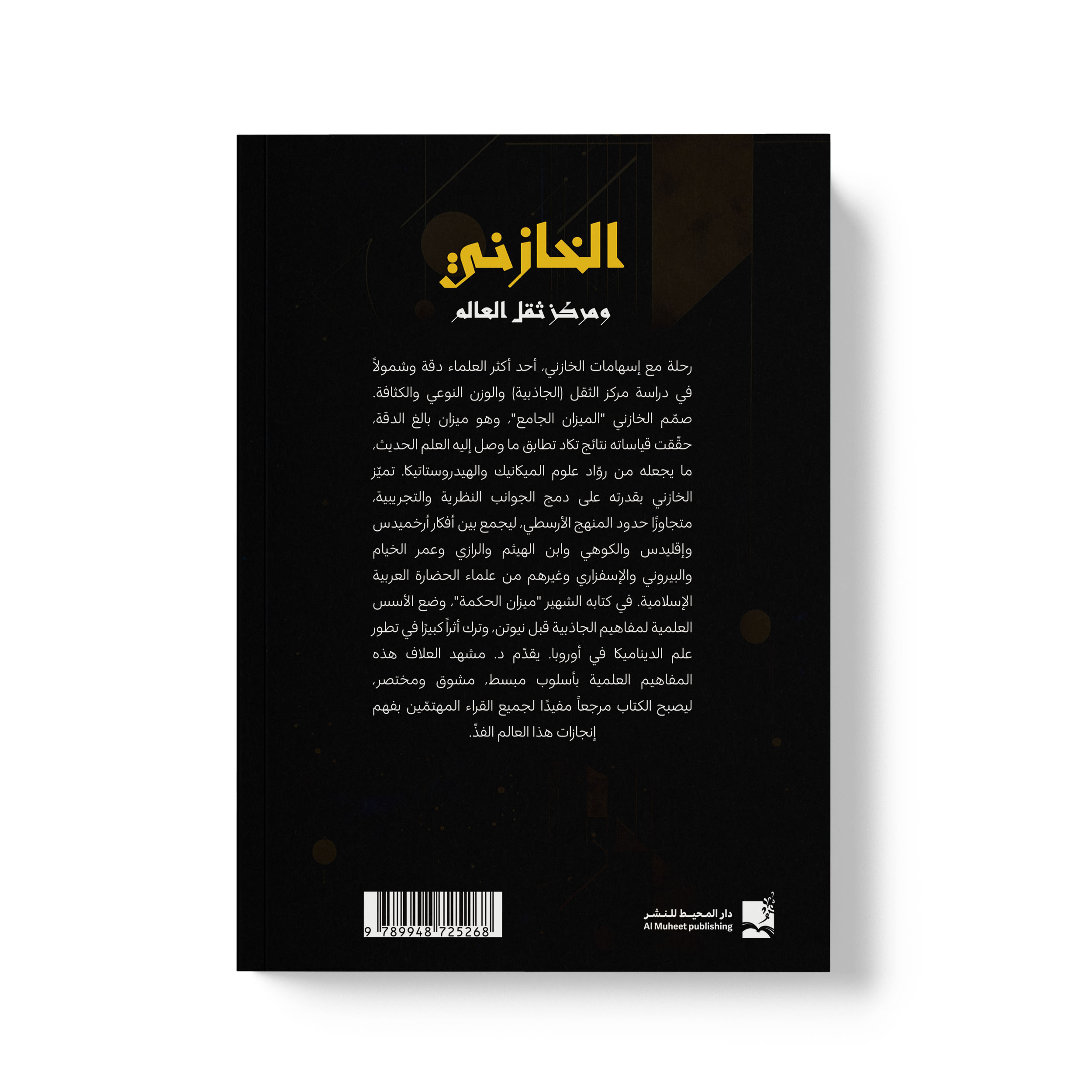 رحلة مع إسهامات الخازني، أحد أكثر العلماء دقة وشمولاً في دراسة مركز الثقل (الجاذبية) والوزن النوعي والكثافة. صمّم الخازني “الميزان الجامع”، وهو ميزان بالغ الدقة، حقّقت قياساته نتائج تكاد تطابق ما وصل إليه العلم الحديث، ما يجعله من روّاد علوم الميكانيك والهيدروستاتيكا. تميّز الخازني بقدرته على دمج الجوانب النظرية والتجريبية، متجاوزًا حدود المنهج الأرسطي، ليجمع بين أفكار أرخميدس وإقليدس والكوهي وابن الهيثم والرازي وعمر الخيام والبيروني والإسفزاري وغيرهم من علماء الحضارة العربية الإسلامية. في كتابه الشهير “ميزان الحكمة”، وضع الأسس العلمية لمفاهيم الجاذبية قبل نيوتن، وترك أثراً كبيرًا في تطور علم الديناميكا في أوروبا. يقدّم د. مشهد العلاف هذه المفاهيم العلمية بأسلوب مبسط، مشوق ومختصر، ليصبح الكتاب مرجعاً مفيدًا لجميع القراء المهتمّين بفهم إنجازات هذا العالم الفذّ.